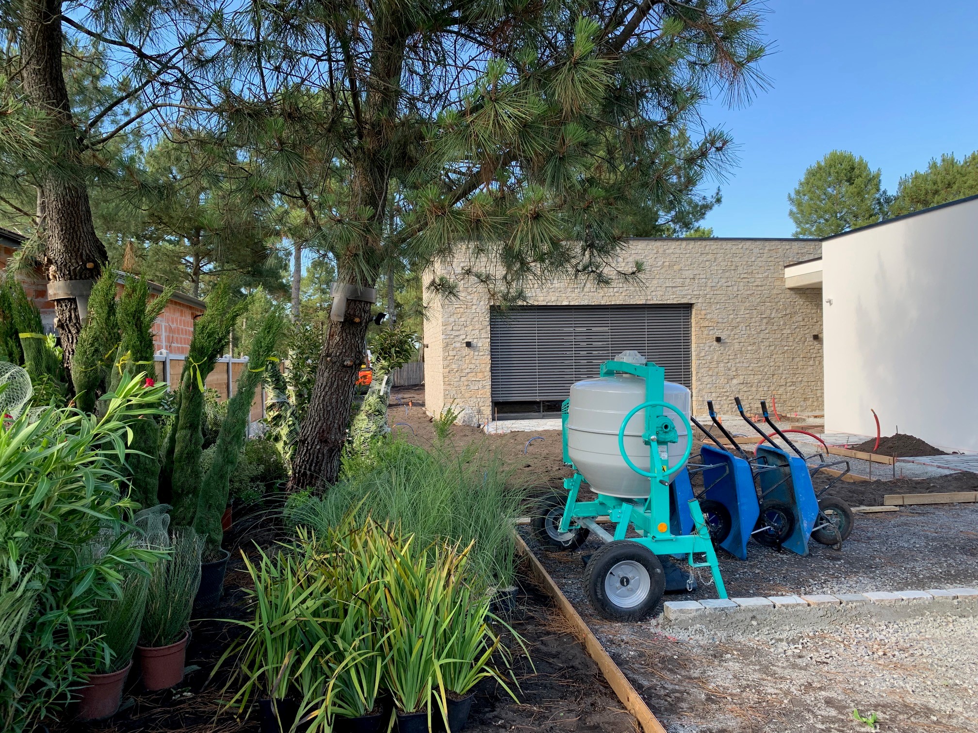 Nous nous rendons à l'ombre des pins, sur la commune de La Teste-de-Buch, à 60km de Bordeaux pour la réalisation complète d'un jardin suite à la construction d'une maison neuve.